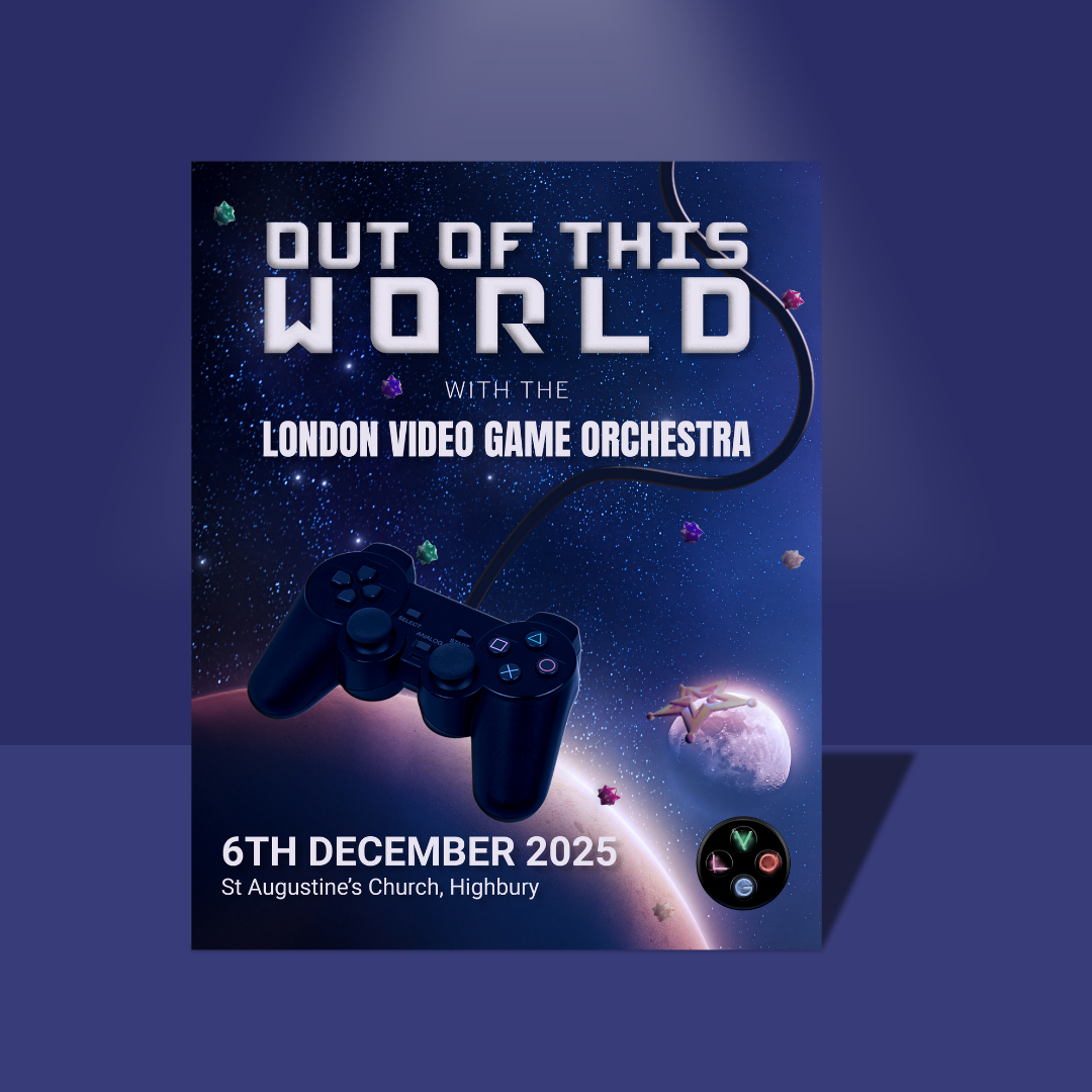 Print flyers and web assets for an orchestra's performance of video game music. Marketing materials included 3 posters (A3, A4, A5), social media posts, and a web banner.